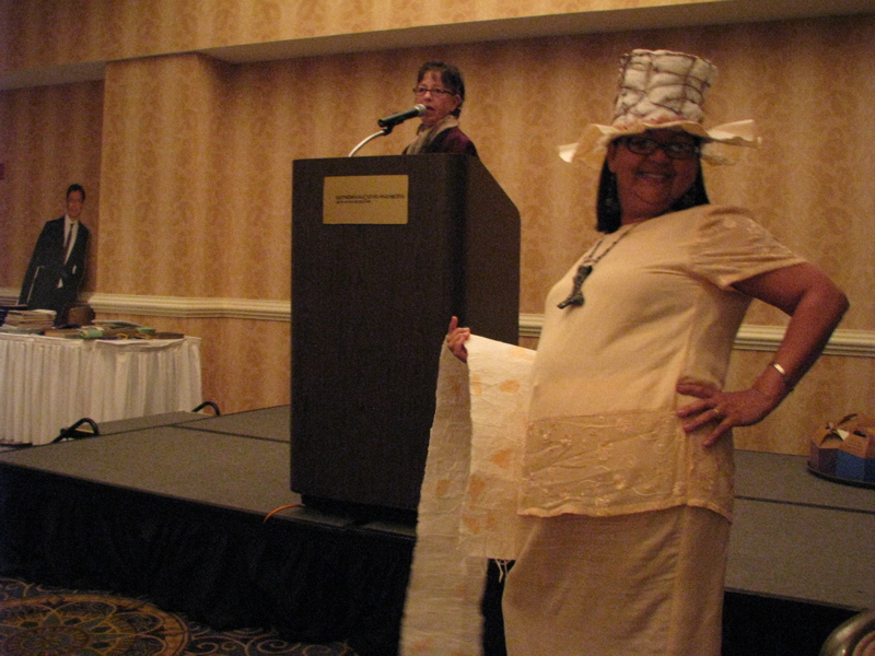 Marilyn Wold (at left) designed three pieces but only two are in the photo (I was too close to the front to get them all at once). She is very kind and gentle and sold me a lovely sugeta last year when I was quite depressed (which didn't change the depression, but I'm glad it passed and I still have the sugeta).Oh, and the FDH blog has announcements from me plus a shot of my demo in Cleveland. Fun stuff. Plus Melissa shared her take of the marvelous gathering of huggers here.