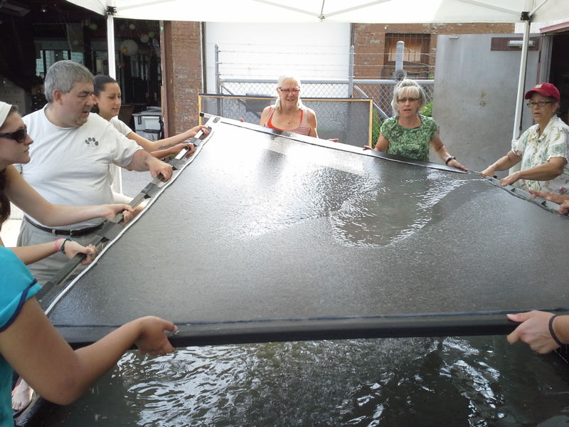 The Big Ass Papermaking is well underway. Hooray for the sun after all this rain threatening to spoil the fun!