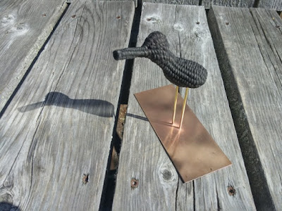 Then I ran over to the metals studio and had Damon Thompson, the jewelry teacher, help me put it on a brass stand for the auction.Here's Cassandra! She showed me where her glass class jumped off of a big rock into the ocean. This was the session to do that, given how hot the days got. I had one student who swam every day. I wish I could have done that but it wasn't in the cards for me this time.