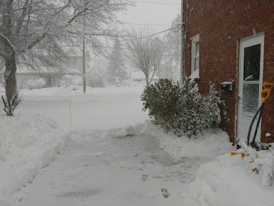 The combination of installing at a place not equipped to properly hang a show (e.g., the fire hazards of the lighting situation, the damage done by too much Magic Eraser scrubbing, non-matching paint colors, and so on) + hosting the ladies (and then my person, who lost power for a few days) = insufficient sleep for five nights in a row + losing my mind + being worried I was getting sick. I'm feeling better now and the upside to hosting is that I stock my fridge like a Serious Grownup so I've been able to eat well the entire time.